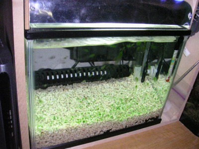 底砂の上とガラス面に、緑色の「コケ」が生えて、だいぶ、目立つようになって来ました。