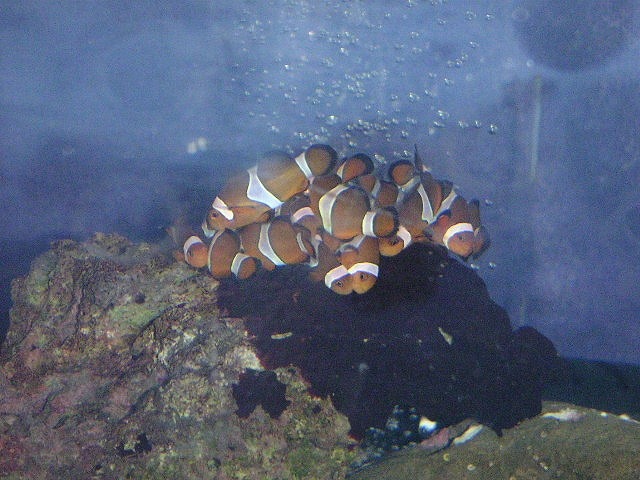 109 | 夜、消灯後、何気なく、水槽を懐中電灯で照らして大笑い。30匹近くが、ひとつのイソギンチャクに固まって、押しくら饅頭みたいになっている。可愛い。こういうところを見ていると、やっぱりチビッコだなあ、と思う。人間の子供が幼稚園で遊んでいるところと同じような感じだ。 | 27 |