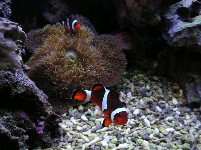 これが我が家のカクレクマノミのペア(親夫婦)です。