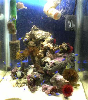 私は海水魚を飼うと言っても、水槽の中に本当に魚だけしかいないのでは、面白くないと思っています。魚がいたりエビがいたり、ヤドカリがいたり、もちろんゴカイやらコペポーダやら、ヨコエビだのもいて、それぞれが色々に影響し合って生活しているのを見るのが面白いです。ですからむぅさんも是非、色々な生き物を入れることを考えてください。面白いですよ。