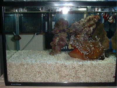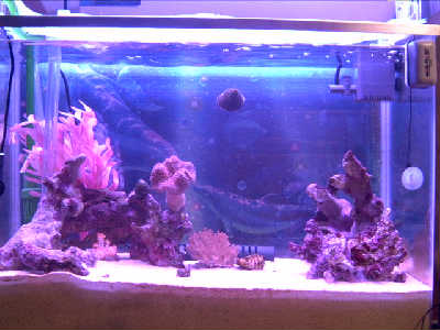 お奨めの魚は何でしょう?具体的にあれ、これ、と言うと色々あって難しいですが、あまり泳ぎ回らなくて、丈夫で、おとなしいもの。私はハナゴンベやスクーターブレニーなどをお奨めしていますが、それらを飼うにはもっと沢山ライブロックを入れて、複雑な岩組みを作る必要があります。