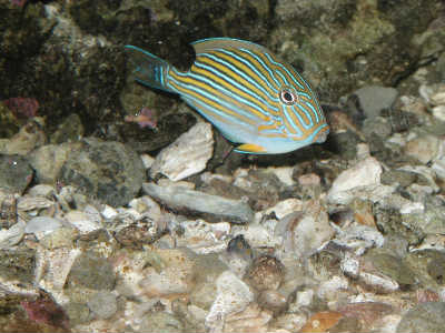 キイロハギ、毎朝目覚ましテレビのバックでとっても元気に泳いでいるのが印象的です。