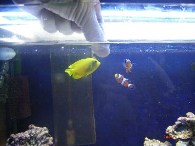 ただしこの時、気をつけなくてはいけないのは、きちんと温度あわせする事です。実は私、温度合わせを忘れて換水して、可愛がっていたハタタテハゼのペアを殺してしまったことがあるんですよ(ToT)。今思い出しても悔しくて悲しい…。(うー、思い出したら本当にまた泣けてきた…。)それだけはお気をつけ下さいね。