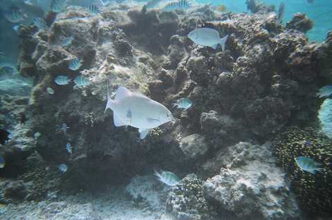 なお、「薬をどんどん投与できるトリートメントタンクを常時回している人以外は、無脊椎動物/ライブロックとヤッコやチョウチョウウオを同居させるべきではない」というのが、私の30年来の持論です。ヒコサン(マラカイトグリーン)は本格的な白点病には無力です。ライブロックが入っている水槽に抗菌剤や抗生剤を投与したり、低比重療法を導入したら大変なことになります。付着生物が全滅し、飼育水中のアンモニア濃度や亜硝酸濃度が急上昇し、飼育水は酸性に傾きます。魚はこれに耐えられません。