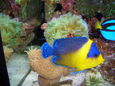 先日、5cm程度のサザナミヤッコの幼魚が人影に驚いて、同居のハタゴイソギンチャクに捕まってしまいました。(同居の時点でこうなることを予測していましたが…ヤハリ)