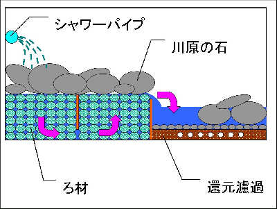 低比重法はシストを破壊する、もしくはシストの正常発育を阻害することによって、飼育水中に遊出する白点仔虫の数を減らして行こうという方法でしょう。一方、ヨウ素殺菌筒による方法は、飼育水中に遊出した白点仔虫を、ヨウ素樹脂のいわば“フィルター”を通じる際に殺して、その数を減らして行こうという方法だと理解しています。