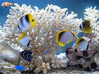 ところで、避難先の60cm水槽では、セパレータが水流で倒れ、勝手に混泳状態になってました。60cm水槽に、フレーム・ヘラルド・トゲチョウ・カクレ2匹の5匹が泳いでいるのは綺麗なんですが、みんな神経質そうに泳いで、今までのゆったり泳ぐ姿が見れません。結局、セパレータで仕切なおしました。