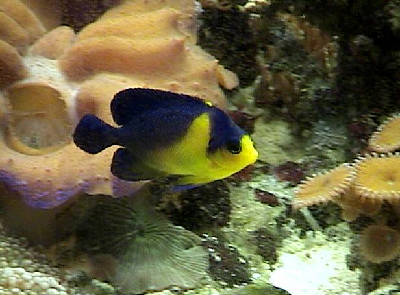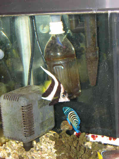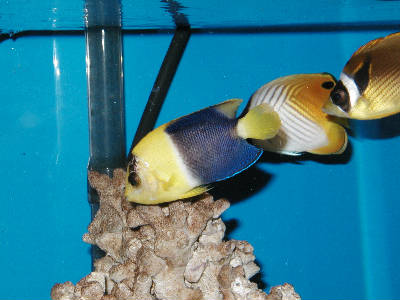 立ち上げ3年過ぎの60規格水槽に2004年3月購入(現在飼育2年10ヶ月)のソメワケヤッコがいます。