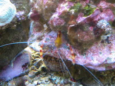 現在はトゲチョウ・チョウハン・ホンソメ・ヘビギンポ・キイロオトヒメエビが同居中ですが、2匹のチョウが成長してきて、立場が逆転しつつあるのだと思います。見た目にはまだ、ソメワケ(7cm)のほうが優位ですが、サイズはトゲ(8cm)の方が大きくなりましたし、遊泳速度や餌食いのすばやさもチョウたちのほうが勝っています。