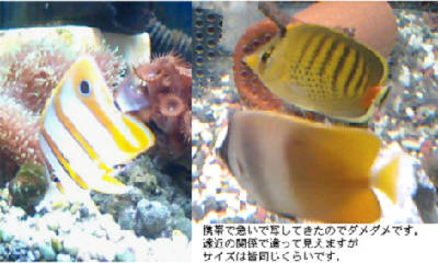 私も最初、「混泳のストレスかなあ?」と思いましたが、やはりtesuoさんの解説によると、チョウチョウウオとの相性は良いみたいですから、「餌の味に慣れて飽きた」という可能性も高いんじゃないかと思いますね。(私は飼育経験がないですけど、猫も時々、餌を変えてあげないと食べなくなってしまうんでしょう?)