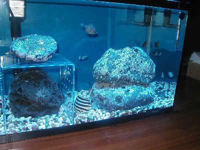 ハシナガ君はこのままでは痩せる一方なので人工飼料に再度挑戦、明日にでも、紙コップにアサリ+人工飼料+海水を入れ、匂い付けした飼料をあげてみようかと思います(食べないだろうな、このガンコさは原始的なのか進んでるのか、わからないT.T)。これといった改善策はいまだ思いつきません。