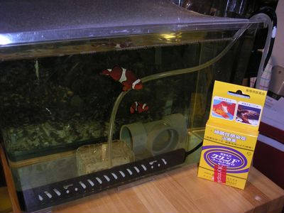また、ちょっと面倒臭いですけど、ブラインの栄養強化自体は難しくはありませんから、やはり「ロード・オブ・ザ・リンク」でご紹介しているクマノミ繁殖関連のショップから栄養強化用のクロレラを入手して、ご自分で“パワーシュリンプ”を作ってみてはいかがでしょう?少なくとも、カクレ稚魚の飼育が我々、素人にも可能になったのは、このクロレラを使った栄養強化のノウハウが普及したお陰ですし(栄養強化にそれほど効果がある)、また難易度の点でも、私がカクレ稚魚用の栄養強化をしている時には、孵化したブラインが勝手に成長して、自家製パワーシュリンプになったことが何度もありました(^_^;;。