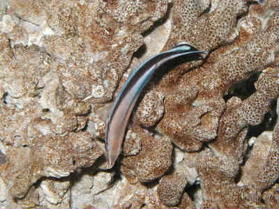 でもこの写真、ライティングがちょっと不思議な感じになっていますが、水槽中央の光源はもしかしてカメラのストロボの写りこみですか?だとすると、撮影としては失敗なのかもしれませんが、結果的には却って面白い写真になりましたねぇ。ハシナガの体表の反射の感じとかも面白いんだよなあ…。