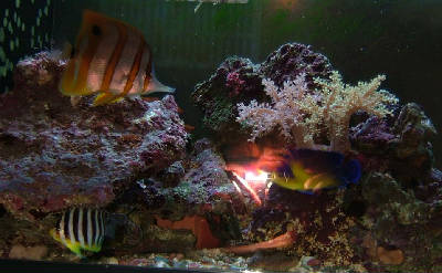 ウチはフレーク中心なので、チョウやヤッコは少しずつしか成長しません。(ハギやスズメダイには通用しない^^;)
