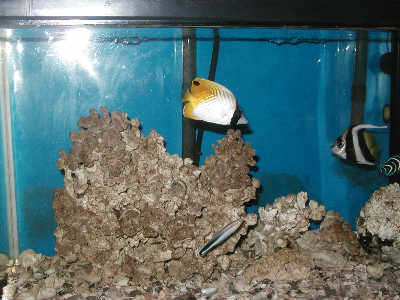 [9369] の写真を拝見すると、非常にシンプルなレイアウトになっていますから、ライブロックを入れても良いですし、飾りサンゴでも良いですし、あるいは、植木鉢とか、塩ビの水道管というのもあります。