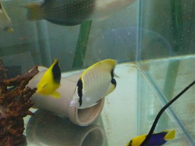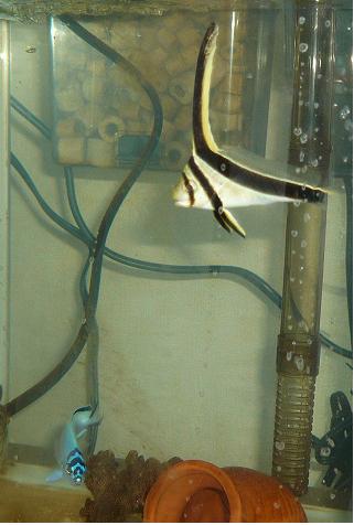 それと、迷っているのですが、この間崩壊した60cm水槽ですが、残ったカクレをペアにして産卵を気長に夢見るか、再構成してチョウ(ティンカーやインディアン)の一匹飼い、もしくはヤッコのゆうゆう1匹飼いを目指し目の保養とするか。。。小さいティンカーはあまり見ないし、チョウには変わりなく病気の心配も…、ヤッコはいずれ混泳したくなるし…あぁ〜悩む。