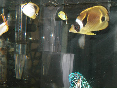>チョウチョウウオ類も飼育しています。左上はセグロチョウ