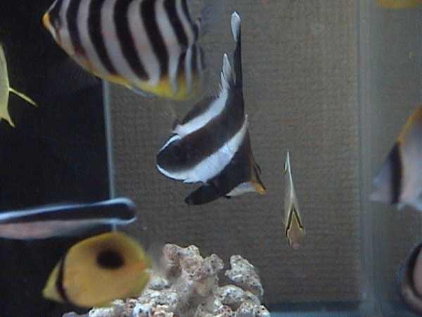 うちのマゴタンクにゃなぜかニシキ、アケボノ、ハタタテ、ツノハタ、オニハタ、カガミ、レモン、ホンソメがひしめき合っております・・・本水槽に行きにしたいんだけどねぇ・・・