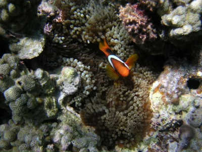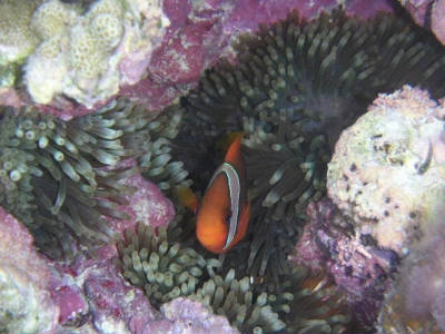 水が綺麗で透明度が高い+浅い=太陽光線(の中の紫外線?)の強い場所では、サンゴ(←あっ、こっちの「サンゴ」は「サンゴイソギン」ではなく、ミドリイシとかのサンゴの話ですが…(^_^;;)もイソギンチャクも、まず間違いなく茶色になりますね(^_^;;。蛍光色は少し深めとか、あるいは水が濁っている場所に多い。