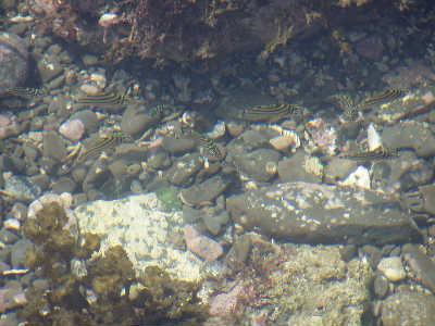 個体によって成長差があるんですね。びっくりしました。どこかで聞いた話なのですが、先住民がいる水槽にタテジマになりかけのウズマキ君を入れたら、制御カラーから幼魚縞模様に戻ったそうです(汗)自分はまだ子供だから虐めないで!っていうアピールでしょうかね?不思議です。
