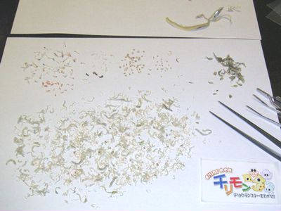 でも実際のところは、「チリモン」の選別をしているとその間にどんどん乾燥が進むようで、私も選別作業後のものをそのまま口に運んだのですが、ちょっとバサバサしてイマイチでした(笑)。そのまま食べるには(←私はチリメン干しをそのまま食べるのも好き。笑)もうちょっと「しっとり感」があるものの方が良いですね。まあ、トンヌラさんみたいに、ごはんに降りかけてしまえば問題ないですし、場合によってはこれでダシをとるという利用法もあるかもしれません。いずれにせよ、選別だけしてそのまま捨てるなんて、もったいなくて出来ませんけど(笑)。